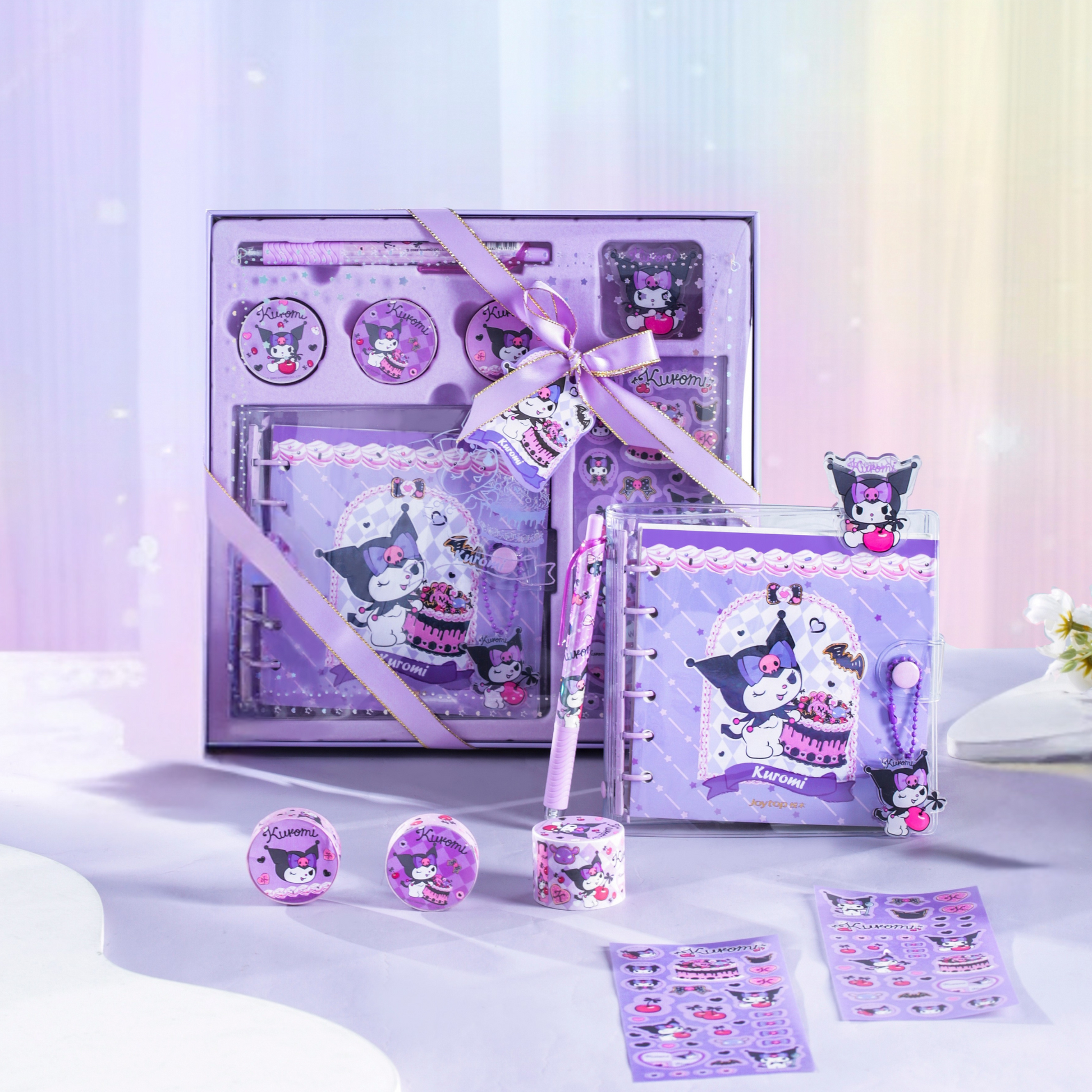 ✔ Stickers ×4 – Diverse Kuromi-thema stickers, perfect voor planners, dagboeken, kantoorbenodigdheden of het versieren van elektronische apparaten.