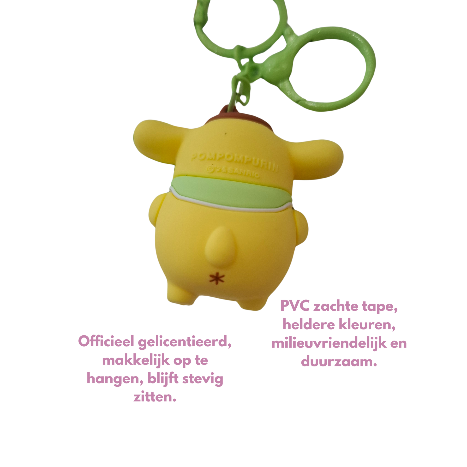 - 1x Sanrio Pompompurin sleutelhanger (ca. 7 cm hoog)